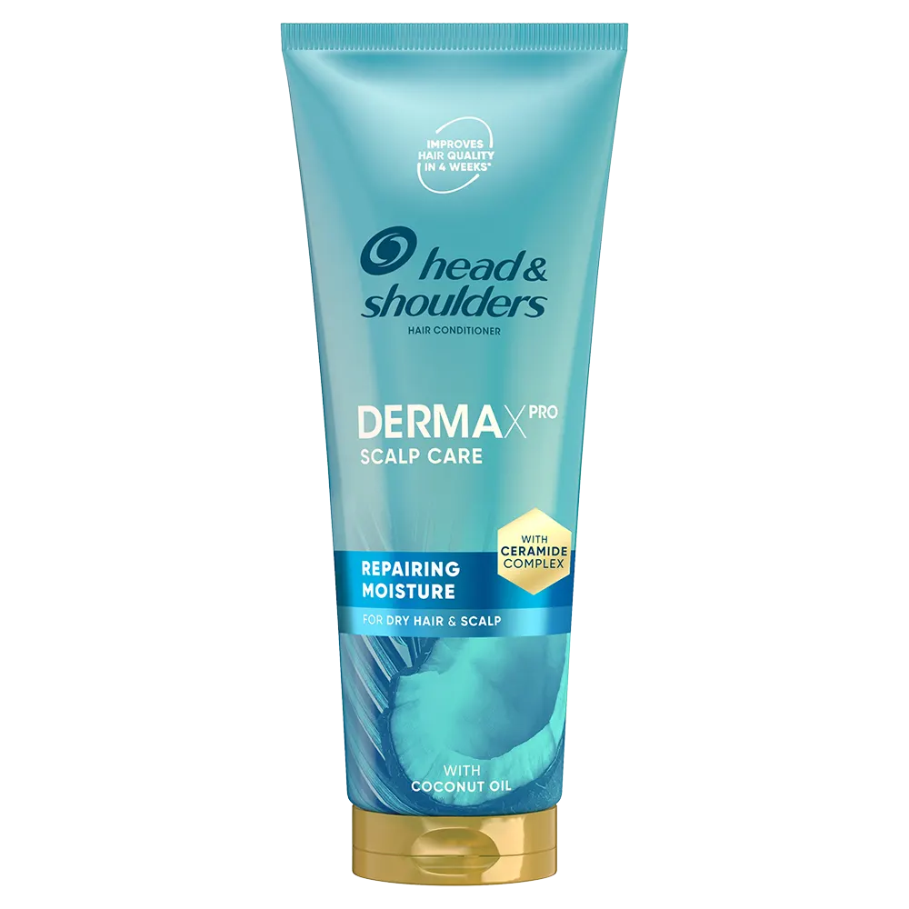 Unleash healthy-looking, nourished and flake-free* hair with Head & Shoulders DermaXPro Repairing Moisture Anti Dandruff Conditioner. With each use, our conditioner helps to strengthen hair fibres against breakage, leaving your lengths nourished and with a lightweight feel. When massaged from roots to tips, with regular use, this conditioner improves hair quality in 4 weeks. It’s infused with coconut oil and ceramide complex (Piroctone Olamine + ceramide), and it is designed especially for dry scalps.